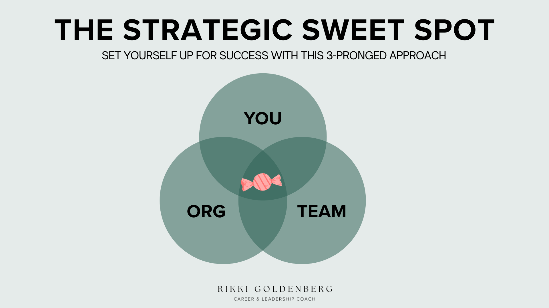 The strategic sweet spot is a measured approach to finding alignment between the goals of the organization, the needs of the team, and your personal and professional goals as an employee. When you’re thinking about those three in conjunction, the magic occurs.